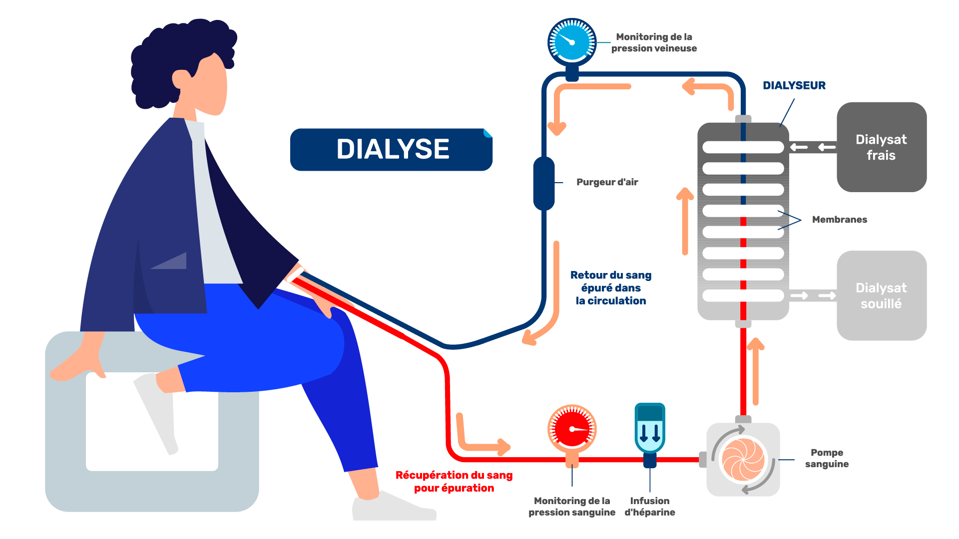 La dialyse est un traitement médical utilisé pour remplacer la fonction des reins lorsqu'ils ne peuvent plus éliminer les déchets et l'excès de liquide du sang. Les reins, lorsqu'ils fonctionnent normalement, filtrent ces substances de manière naturelle, mais en cas d'insuffisance rénale, cette fonction est compromise. La dialyse permet de nettoyer le sang et de maintenir l'équilibre des électrolytes, ce qui est essentiel pour la santé du corps.